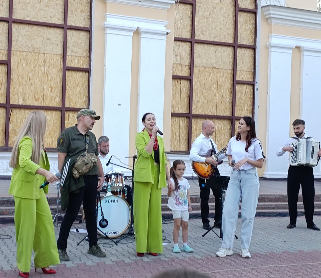 А далі розпочався концерт ансамблю народної та сучасної музики «Єлисавет-ретро» – і майданчик біля філармонії наповнився теплою, душевною атмосферою. Прозвучали пісні сучасних українських композиторів, які торкалися найпотаємніших струн серця. Глядачі щиро підтримували артистів, дарували гучні оплески й підспівували знайомим мелодіям. А коли пролунала фінальна «Червона рута», вся площа заспівала разом. Ця пісня стала справжнім гімном єднання, символом нашої незламності та віри у перемогу.